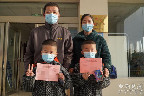 雙胞胎兄弟在家長的帶領(lǐng)下接種疫苗。余晨 攝