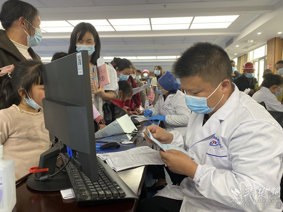 黃岡疾控工作人員仔細(xì)核對(duì)學(xué)生信息。余晨 攝