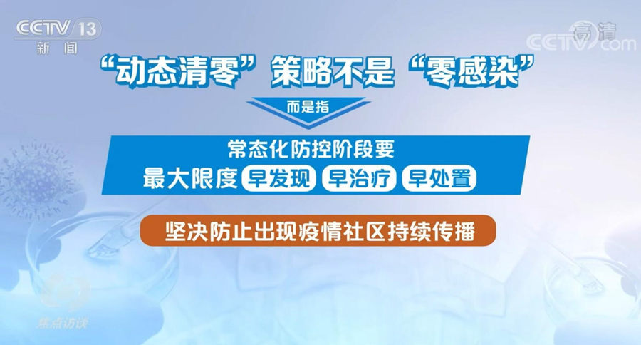 在我國(guó)的常態(tài)化疫情防控政策中,“動(dòng)態(tài)清零”是一個(gè)引人關(guān)注的關(guān)鍵詞。有許多人將它解讀為防控目標(biāo)是“零感染”、沒(méi)有病例。對(duì)此,相關(guān)專家表示,“動(dòng)態(tài)清零”并不是必須做到“零感染”,而是指常態(tài)化防控階段要最大限度早發(fā)現(xiàn)、早治療、早處置,堅(jiān)決防止出現(xiàn)疫情社區(qū)持續(xù)傳播,保持動(dòng)態(tài)的疫情可控和總體安全狀態(tài)。