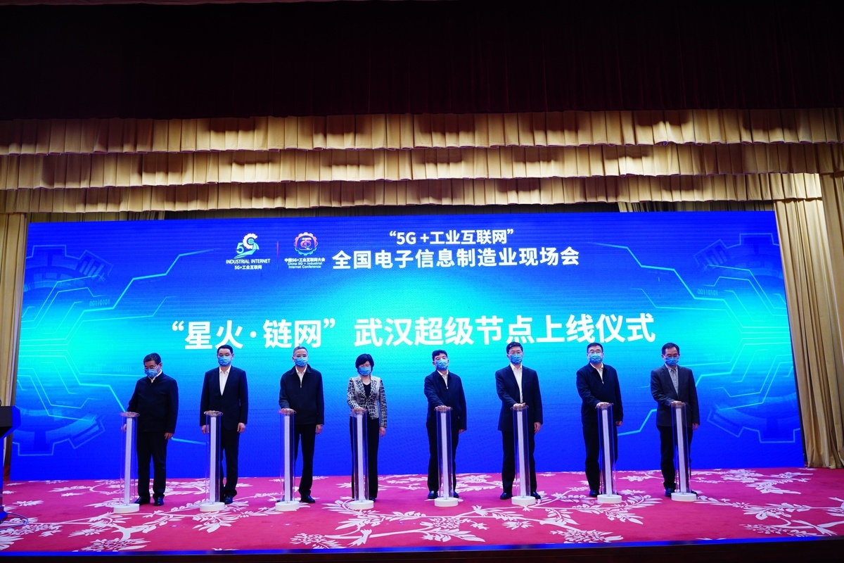 在現(xiàn)場會上,湖北省人民政府副省長曹廣晶、工業(yè)和信息化部總工程師韓夏、工業(yè)和信息化部信息通信管理局局長趙志國、湖北省人民政府副秘書長何開文、湖北省通信管理局局長吳俊、湖北省經(jīng)濟和信息化廳廳長劉海軍、武漢市人民政府副市長彭浩、中國信息通信研究院院長余曉暉共同啟動“星火?鏈網(wǎng)”超級節(jié)點(武漢)。