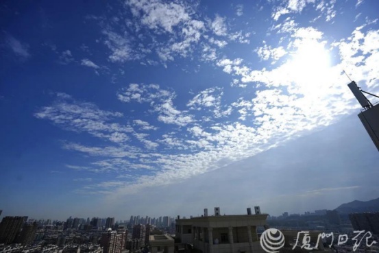 廈門天空被“一分為二”?其實(shí)是不同性質(zhì)的云團(tuán)在冷暖氣團(tuán)的擠壓下,云邊界被“切”得十分整齊。