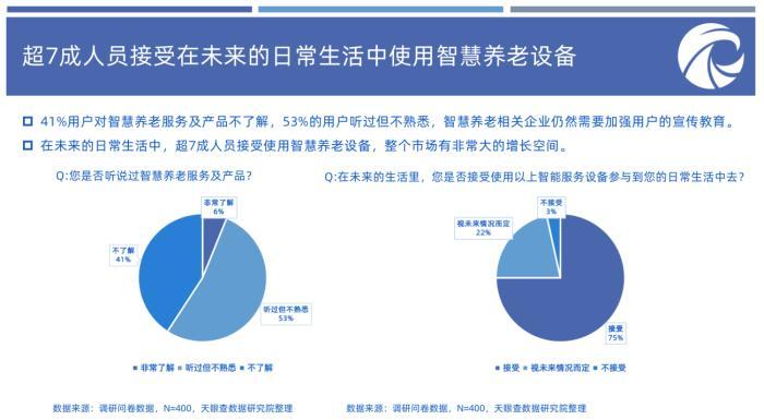 為反映當代銀發(fā)經(jīng)濟現(xiàn)狀,引導當代年輕人形成正確的“養(yǎng)老觀”,11月29日,天眼查與百度財經(jīng)聯(lián)合發(fā)布《大健康時代新機遇:未來生活的前置思考》報告。報告顯示,近五年養(yǎng)老產(chǎn)業(yè)融資60億,養(yǎng)老相關企業(yè)數(shù)量持續(xù)增加,共計超過23萬家;智慧養(yǎng)老企業(yè)數(shù)量達5300余家,超7成人愿意在未來生活使用智慧養(yǎng)老設備。