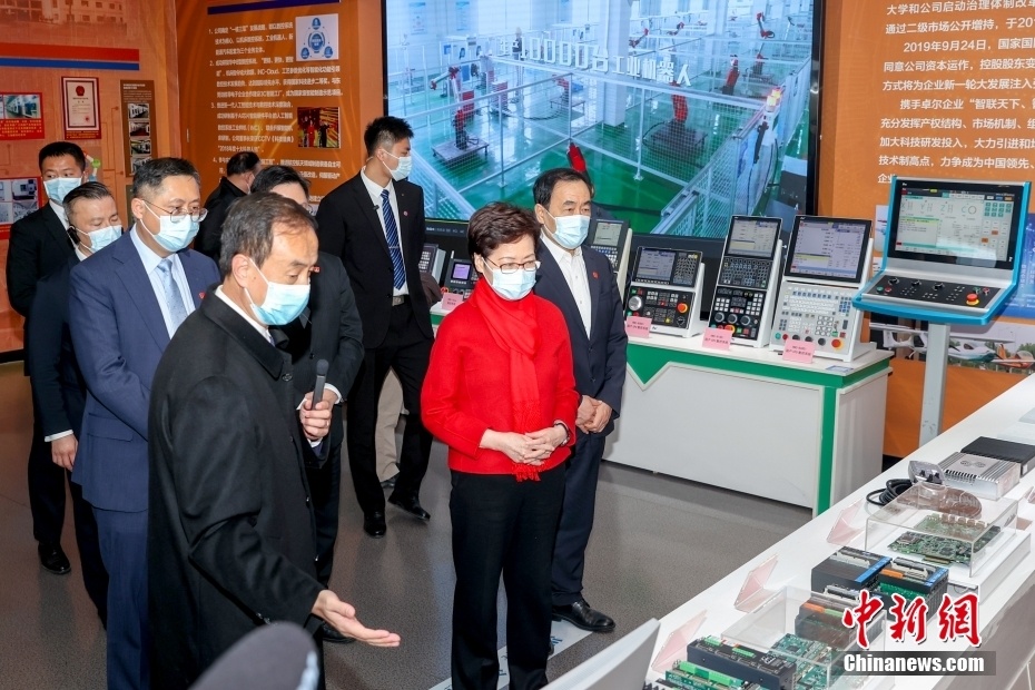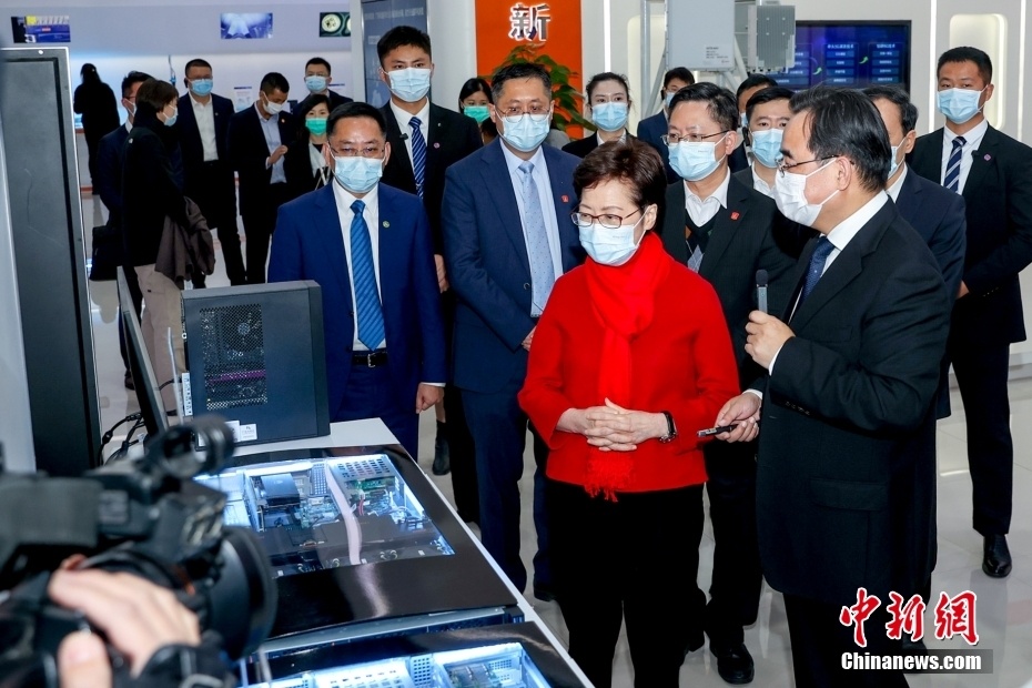 圖為林鄭月娥參觀中國信科集團。 中新社記者 張暢 攝