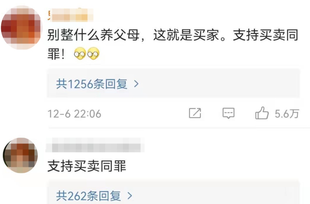 目前,孫卓的養(yǎng)父母已被采取強(qiáng)制措施。而這一次,網(wǎng)友旗幟鮮明地站在了“買賣同罪”一邊。