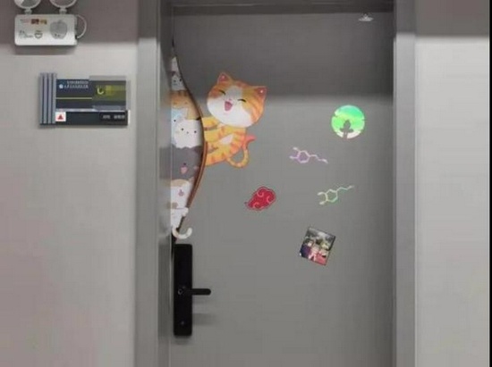 辦公室門上貼滿卡通形象