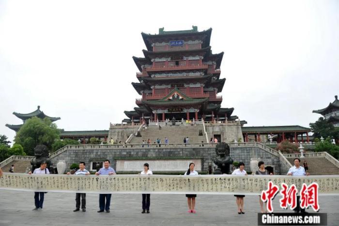 2014年8月,48米長的《滕王閣序》行草書法手卷亮相江南名樓滕王閣景區(qū)。中新社記者 劉占昆 攝