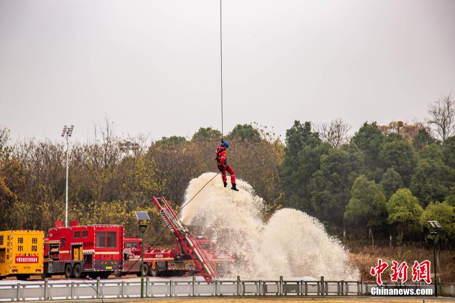 圖為第一屆應急救援專業(yè)技能競賽中的繩索救援科目。中國安能三局供圖