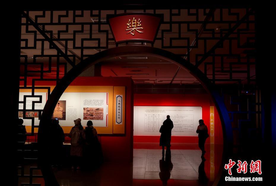 12月17日,“珠還合浦 歷劫重光——《永樂大典》的回歸和再造”湖北巡展在湖北省圖書館舉行,3冊《永樂大典》嘉靖副本首次出京展出,亮相湖北省圖書館?!队罉反蟮洹烦蓵诿鞒勺嬷扉τ罉纺觊g,重抄于明嘉靖末期,共11095冊,22877卷,3.7億余字。圖為參觀者在現(xiàn)場觀展,墻上展出的是朱元璋、朱棣畫像。 中新社記者 張暢 攝