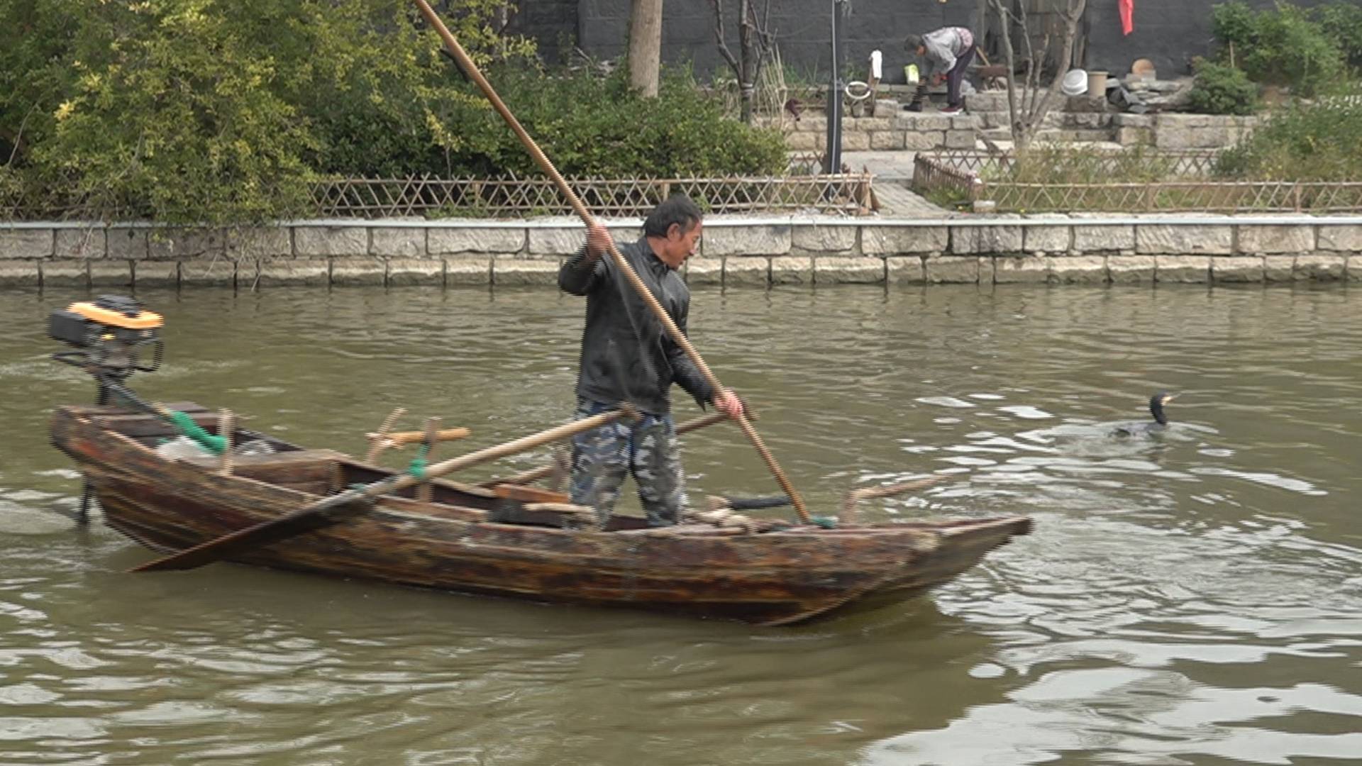剛送完出嫁的新娘,一陣魚鷹的啼鳴吸引了記者的注意。水面上一只只長著碧綠色眼睛、彎鉤嘴的鳥兒們正目不轉(zhuǎn)睛地注視著水下的動(dòng)靜,伴隨一個(gè)標(biāo)準(zhǔn)式“下潛”,幾秒鐘后,它們的嘴里就分別多了一條青魚。原來,這些捕魚的鳥正是漁民羅永慶的魚鷹群,馴養(yǎng)魚鷹也是南陽漁民特有的捕魚方法。