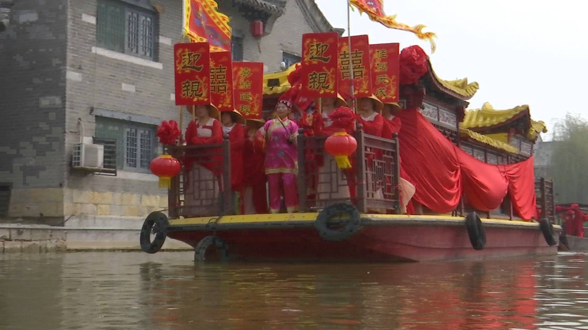 微山縣南陽鎮(zhèn)北二村支部書記韓井蘭介紹,南陽古鎮(zhèn)四面環(huán)水,不管是出嫁的姑娘還是迎娶的新娘,都要坐船出入。