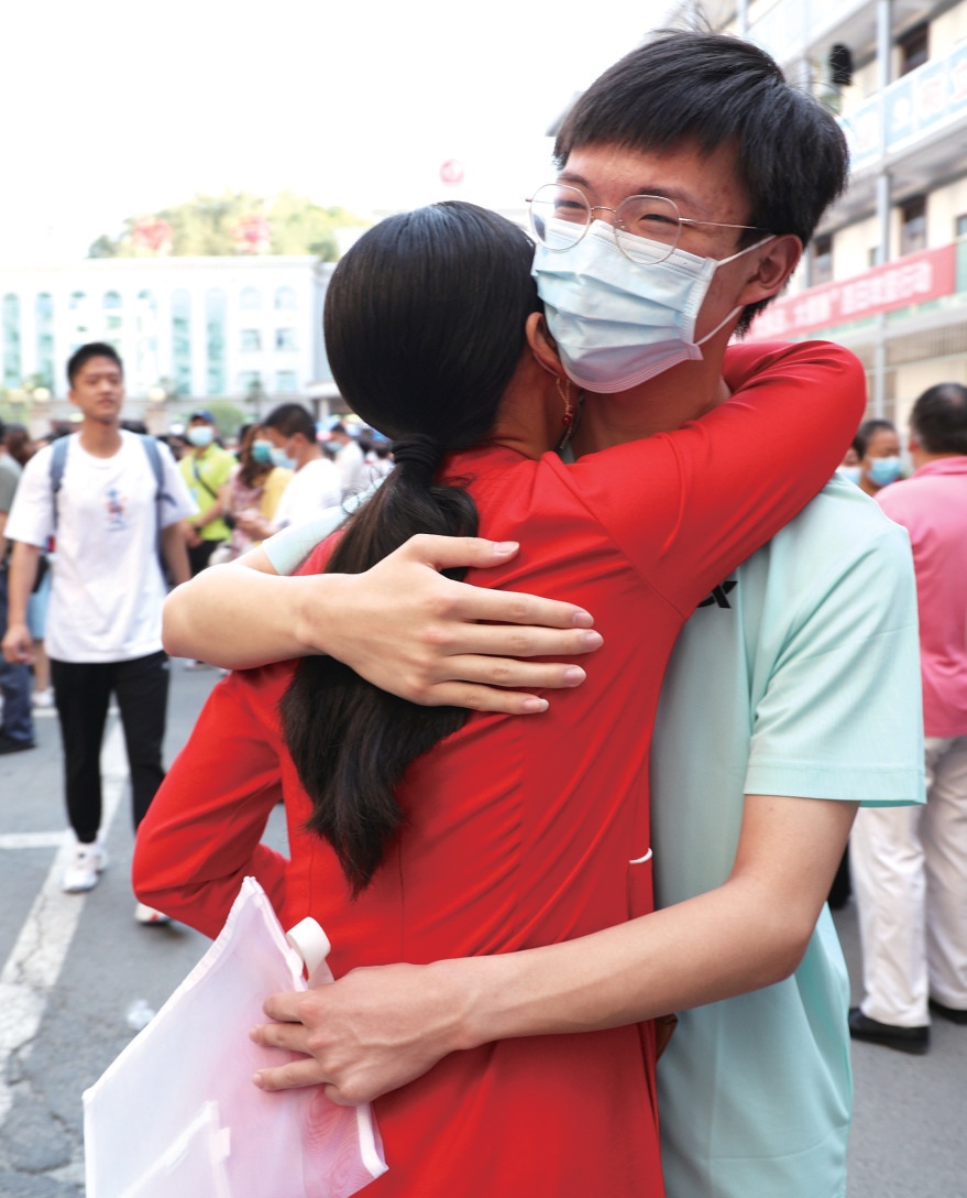 考場里,是對考生12年勤學苦讀的檢驗;考場外,是親人們的牽掛與期盼。臨進考場前,走出考場后,一個緊緊的擁抱、一個自信的手勢、一個會心的微笑,舉手投足間都是滿滿的愛。文、圖/記者 張啟國 劉成臣