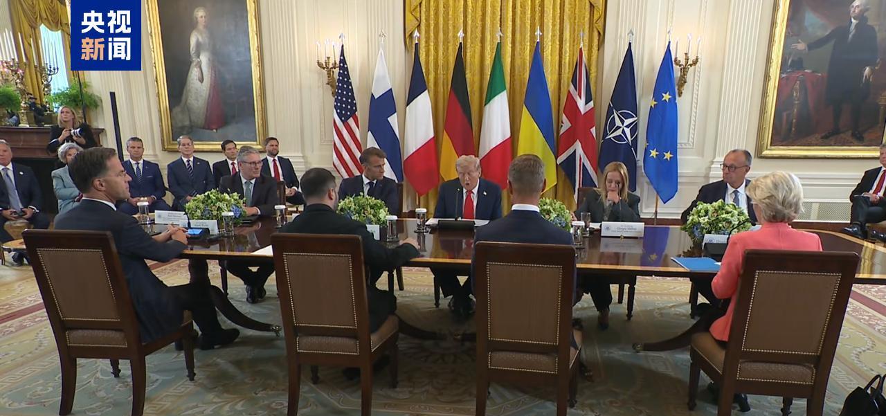 當(dāng)?shù)貢r(shí)間8月18日,美國總統(tǒng)特朗普在白宮與到訪的歐洲領(lǐng)導(dǎo)人舉行多邊會(huì)晤。除特朗普與烏克蘭總統(tǒng)澤連斯基外,與會(huì)者包括歐盟委員會(huì)主席馮德萊恩、法國總統(tǒng)馬克龍、德國總理默茨、英國首相斯塔默、意大利總理梅洛尼、芬蘭總統(tǒng)斯圖布以及北約秘書長呂特。