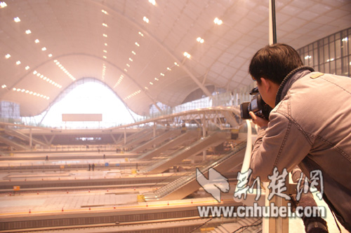 荊楚網(wǎng)消息(記者高霞、艾凌璐 攝影記者王唯翀)12月10日早上7時30分,湖北日報、湖北電視臺、湖北人民廣播電臺、荊楚網(wǎng)等四十家來自中央駐漢、湖北省級及地市媒體一行開始武廣體驗之旅。動車組9時52分發(fā)車,12時42分到達終點站廣州北。由于位于番禺的廣州南站未能及時建成,位于花都的廣州北站成為武廣客運專線的臨時始發(fā)站和終點站。