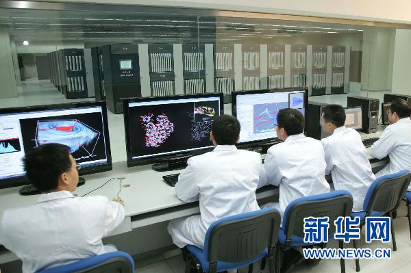 這是科研人員在對“天河一號”超級計算機進(jìn)行系統(tǒng)性能測試(資料照片)。 新華社發(fā) (何書遠(yuǎn) 攝)