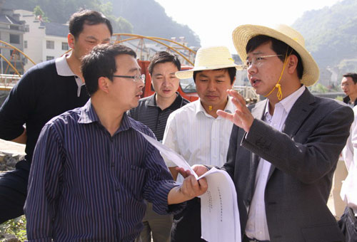 神農(nóng)架林區(qū)黨委政府召開下谷鄉(xiāng)現(xiàn)場辦公會(huì)議。右一為周森峰。