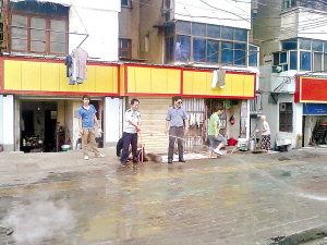 在武昌楊園路,市民劉先生昨天拍到了城管清洗路面的場(chǎng)景。劉先生說,這里一些餐飲攤子常年占道經(jīng)營,好好的人行道變成了黑色人行道。最近幾天,城管人員反復(fù)清洗被污染的路面:堿水泡、鏟子鏟、多功能路面去污機(jī)洗刷、清水沖洗,18般“武藝”都使出來了,挺不容易,要“贊”一個(gè)。(右上圖)